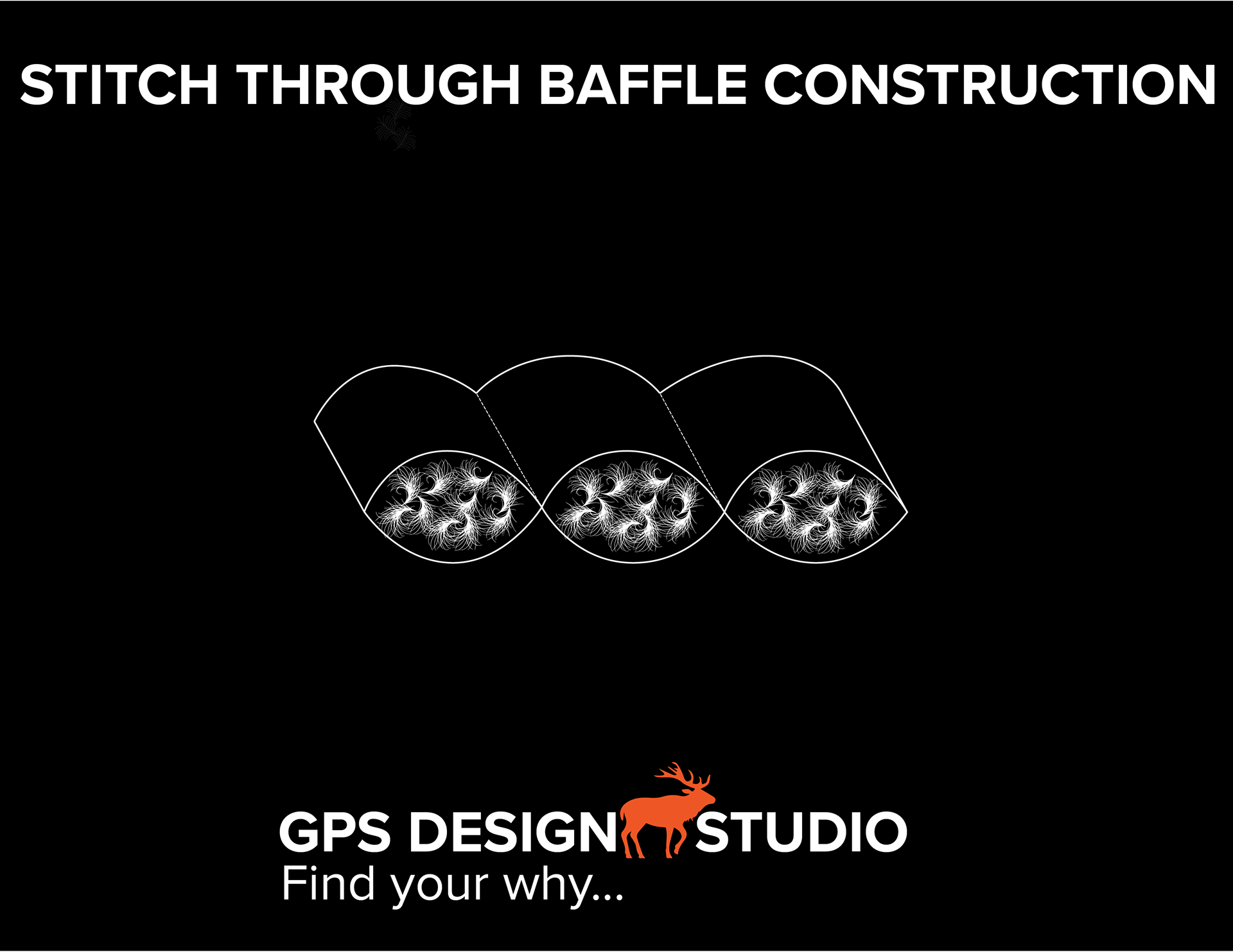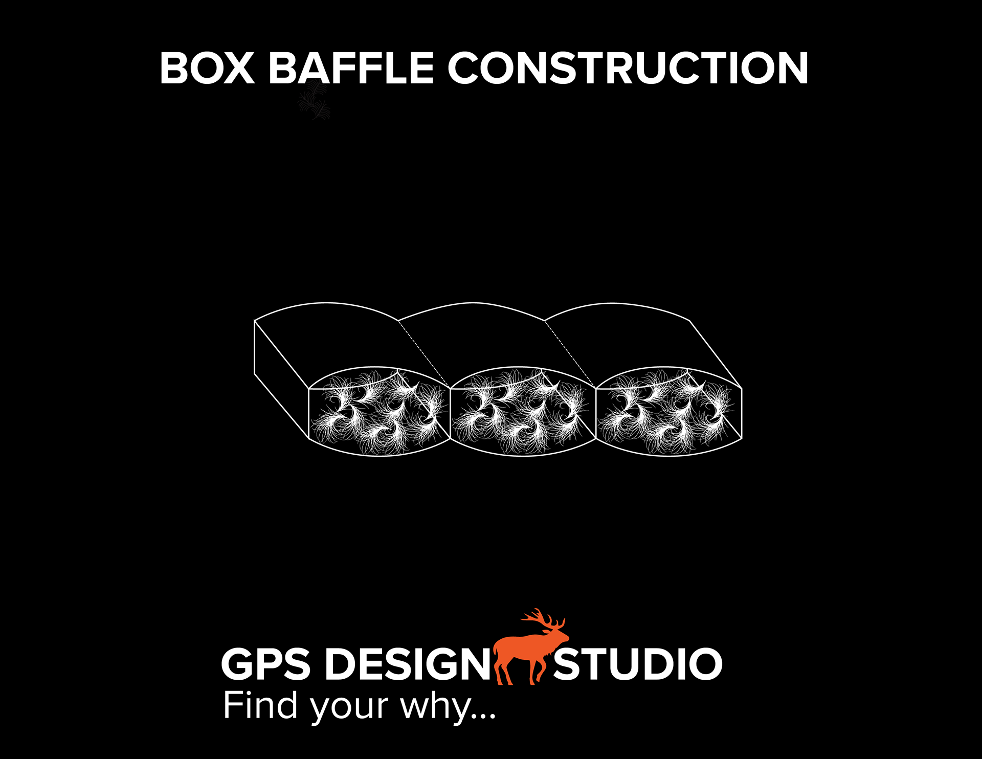 Box baffles use internal fabric walls to create true 3D chambers, allowing down to fully loft without cold spots. Baffle widths can be varied depending on what your end use is.