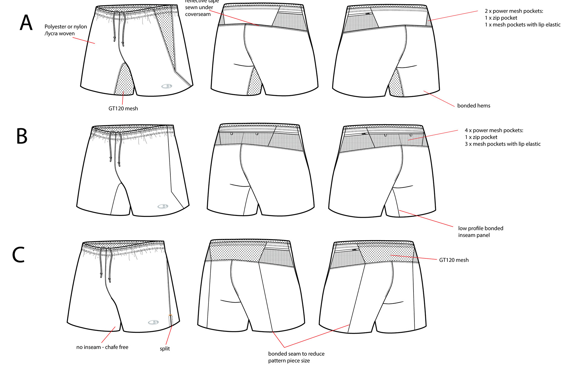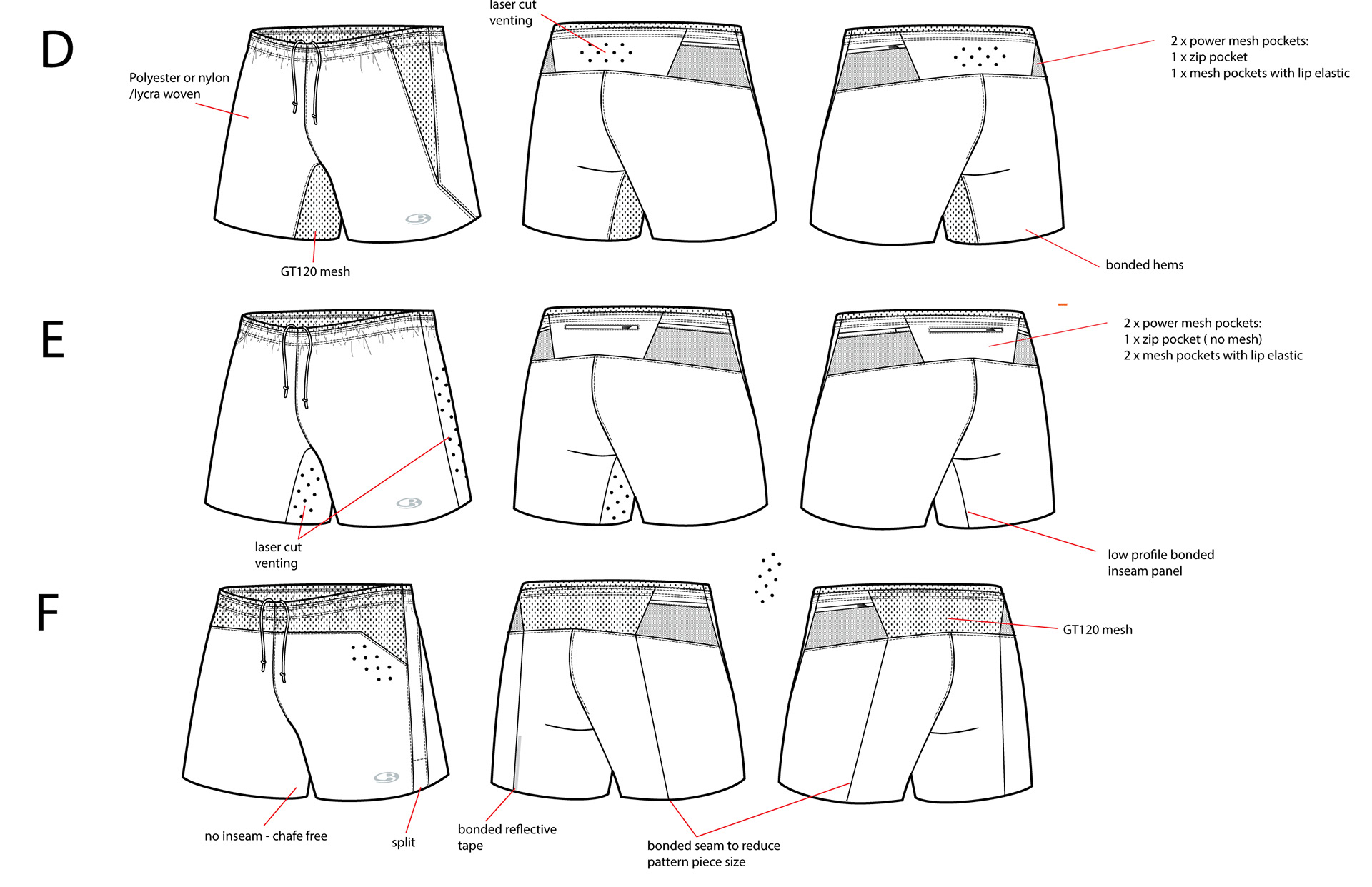 The Brief - Design and create a new range of chafe free merino wool running apparel building on the success of the previous seasons. This included looking at seaming detail, bonding seams, reflective accents and use of color.